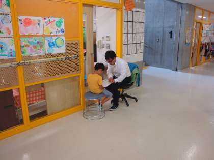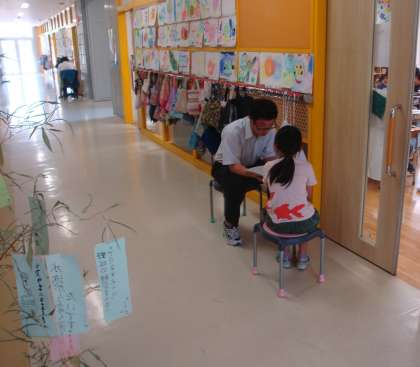 1学期の学習や生活を記録した通知表が今日、子どもたちに渡りました。担任が一人ひとりの子どもに言葉をかけながら手渡しました。