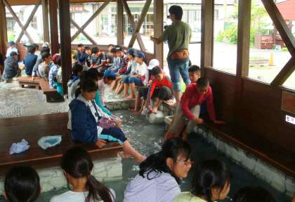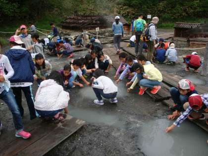 7/25 6年日光林間2日目・湯元源泉・足湯 公開日 2017/07/26 更新日 2017/07/26 できごと 奥日光湯元温泉の源泉に行きました。すぐ足下からポコポコ熱い温泉がわき上がっています。そこへ十円玉をつけると・・・。みんな温泉で指がすべすべになっていました。少し雨に降られましたが、大したことなくて助かりました。 湯元温泉の足湯にも入りました。足がほっこりしました。さあこれから、戦場ヶ原へハイキングです。 いいね(0)