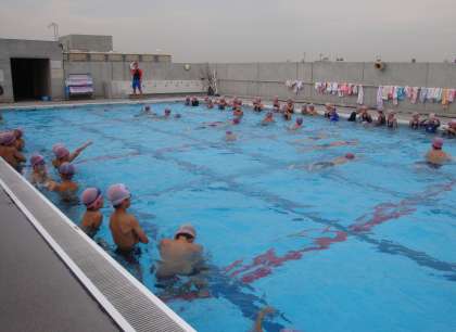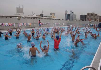 20日、4年生のプール納めでした。みんなで盛り上がるプールの中でのジンギスカンの踊りもいよいよ最後となりました。この日も、下高井戸の町中に子どもたちの声が響くほど盛り上がっていました。もちろん、泳力もしっかりつけてプールの授業を終えました。