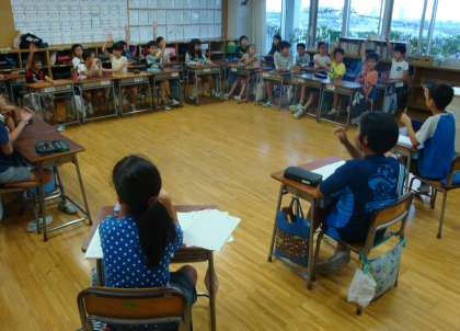 10/11 学級会2・4年 公開日 2017/10/11 更新日 2017/10/11 できごと 4年生も学級会をやっていました。話し合いの仕方も低学年と違い、ぐっとしっかりしています。司会を助け話し合いの進行を援助する意見なども出てきます。先生の助言することもぐっと減ってきます。司会グループと先生との距離も少し離れてきます。活発な意見交換が行われていました。 いいね(0)
