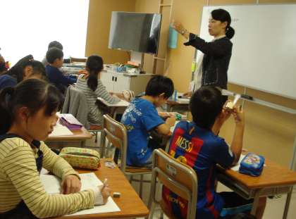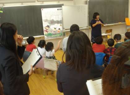 子どもたちはたくさんの先生に見守られながら楽しそうに授業に取り組んでいました。