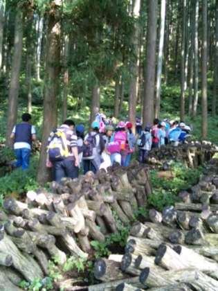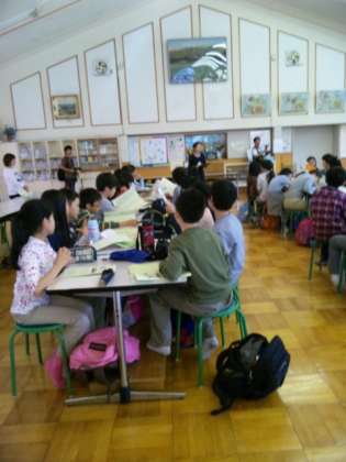 川場小学校のランチルームで教頭先生のお話を聞いたり