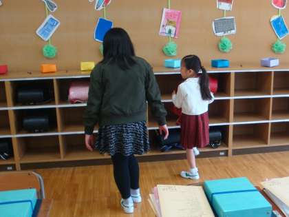 6年生が入学式に来た1年生のお世話をいろいろやってくれました。名札をつけたり、案内をしたり、ランドセルをしまったり、トイレに連れて行ったり。柔らかい笑顔で1年生に接する6年生を見ていると、何か温かい気持ちになっていきます。