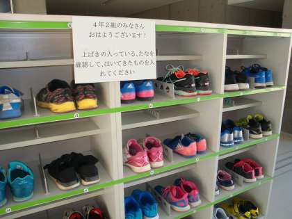 4年生の下駄箱をふと見てみると、きれいに靴が並んでいました。張り紙があり、間違えないように入れて欲しいという内容がありました。間違えないように入れる気持ちと新しいスタートへの思いが自然と靴をきれいに入れるところへつながったのではないでしょうか。子どもたち新学期すてきなスタートを切っています。