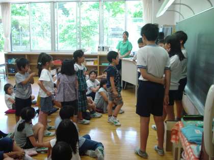1年生から6年生まで48のグループに分かれて活動する「たてわり班活動」がスタートしました。月に1回程度、6年生がリーダーとなりいろいろな遊びを企画して、みんなで楽しみます。