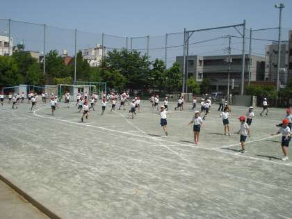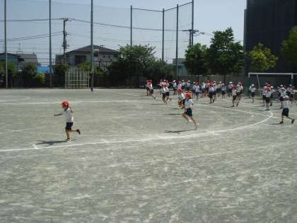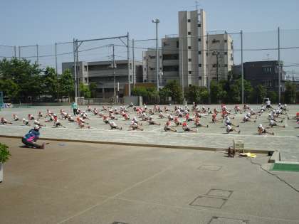 校庭では初夏の日差しを浴びて元気いっぱい4年生が運動会の練習をしていました。縄跳びを跳びながら、素早く校庭に集まり、きれいな列をつくっていました。準備体操の様子もいつもより張り切った感じで、かっこよく見えました。学校全体が運動会に向かって動き始めています。