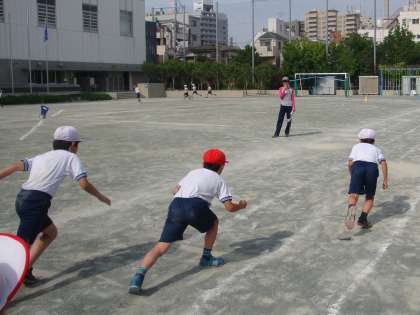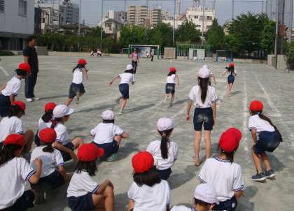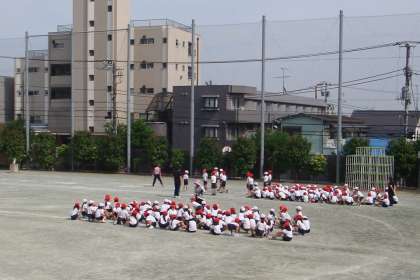 3年生は初めて曲走路のコーナーを走り抜ける80m走を運動会で取り組みます。まずは整列から、スタート最初のコーナーを少し回ったところまで、しっかり走る練習をしていました。自分のスタート順を覚えて並ぶのも大事な練習になります。運動会の日、たくさんの声援の中、子どもたちが駆け抜けていく姿が目に浮かんできます。
