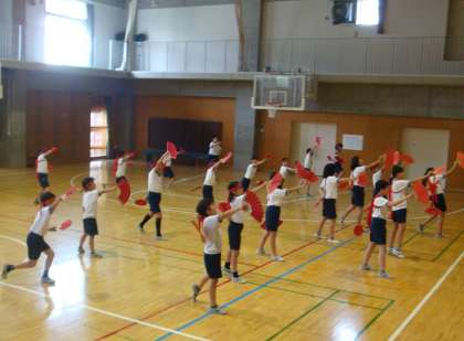 5/17 応援団も練習がんばってます 公開日 2018/05/18 更新日 2018/05/18 できごと 朝登校前の時間やお昼休みなどを利用して応援団の練習も進んでいます。団長を中心に赤、白それぞれ元気いっぱいがんばっています。たくさんの技を覚えたり、みんなが盛り上がる応援を考えたり、からだと頭を使って運動会に向けて準備をしています。少し大変ですが、きっと子どもたちの思い出に残ることでしょう。運動会当日の活躍が楽しみです。 いいね(0)