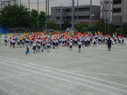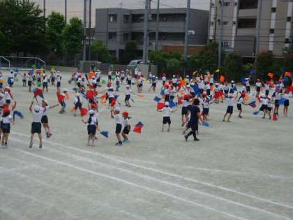 旗を使った3年生の表現活動がかなり仕上がってきました。子どもたちは楽しそうに旗を持って移動していきます。最後の部分を写真に撮ったので公開しちゃいます。(本当は秘密にしておきたいのですが・・・。)運動会の日、キラキラした子どもたちの姿を実際に見てください。運動会は今週土曜日です。楽しみ、楽しみ。