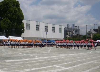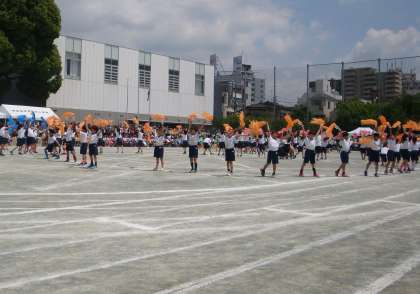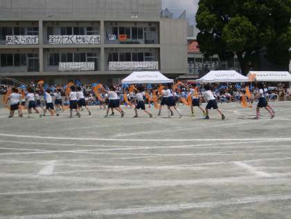 2年生の表現はペットボトルを切ってスズランテープをつけ、大きく振りながらの演技でした。子どもたちは体をいっぱいに伸ばしながら思い切り踊っていました。さすが2年生、隊形の移動もスムースでした。