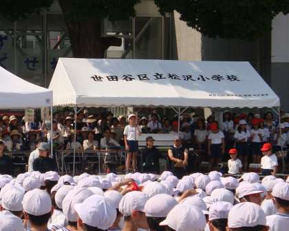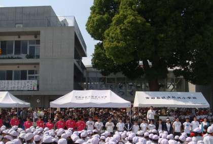 閉会式では、得点の発表があり、優勝した赤組の応援団長が校長先生から優勝旗を受け取りました。1日中運動会のお手伝いをしてくれた日大の学生にお礼をいいました。最後に児童会の代表が運動会の感想をしっかりまとめて発表しました。西に傾いた太陽に照らされた子どもたちの顔がなにか誇らしく見えました。