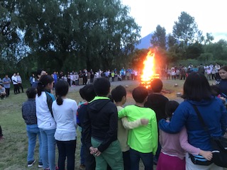 昨夜は、キャンプファイヤーと花火で楽しみました。