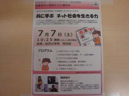 また、6年生の学習の後には、保護者向けの講習会も開かれました。大人が考えているよりもとてつもなく早く子どもたちの取り巻く環境の中にインターネットは入り込んでいます。大人もいろいろなことを知っておく重要性を感じました。