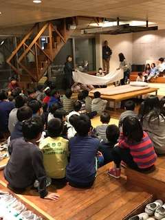 宿舎に戻ってからは、「布団のたたみ方講習会」をして、明日の部屋の片付け方について確認しました。