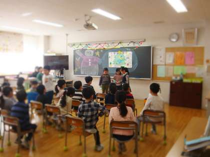 1年生の教室ではお楽しみ会が行われていて、2学期最後の日をみんなで楽しく過ごしていました。