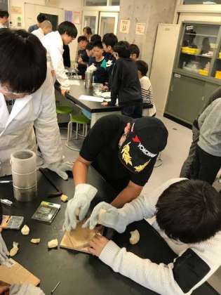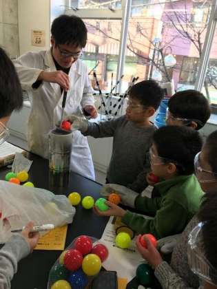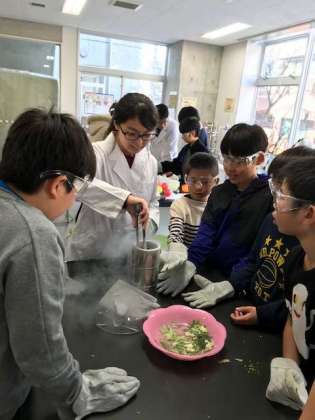 科学クラブの活動に、日本大学文理学部化学科の研究室の先生と学生さんが液体窒素を持って来てくれました。液体窒素を使ったたくさんの実験をやらせてくれました。凍ったバナナで釘を打ったり、凍ったキャベツが一瞬でバラバラになったり、カラーボールの弾み方や弾む音が変わったり、ピンポン玉からなぜか空気が出てきてくるくる回ったり、フィルムケースが飛んだり・・・。深い学びと共に楽しい時間を過ごしました。