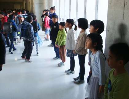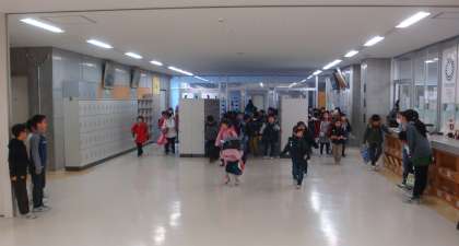 1階2階それぞれの昇降口の前では、2年生と4年生が靴を履き替えた子ども達に元気にあいさつをしていました。名前も知らない同士ですが、あいさつをかわし、すてきな1日をスタートさせていました。
