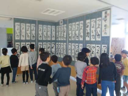 1/22 書き初め展 公開日 2019/01/22 更新日 2019/01/22 できごと 学校公開に合わせて「書き初め展」が校内で開かれました。3学期始まって授業の中でそれぞれ書いた書き初めがずらりと展示されました。2学期末の授業で、さらに冬休み中の宿題で練習を重ねて、本番を迎えています。 1・2年生は鉛筆によるもので、3年生から上の学年は毛筆によるものになっています。 学校公開が終わったこともあり、今日はたくさんの子ども達が担任に引率されながら書き初め展を見て回っていました。 いいね(0)