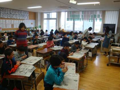 教室内には、図画工作担当の先生以外にも担任や教育ボランティアの方なども入り、安全に配慮しながら、子どもたちの技能を高めていきました。