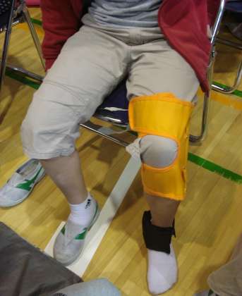 膝や肘の関節や足首に重りなどをつけ、動きを制限し、高齢者の方のからだの動きを疑似体験しました。また、ヘッドホンのようなものをつけたり、眼鏡のようなものをつけ、ものの聞こえ方や見え方にも制限を加え、高齢者の方の聴覚・視覚も疑似体験しました。