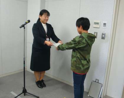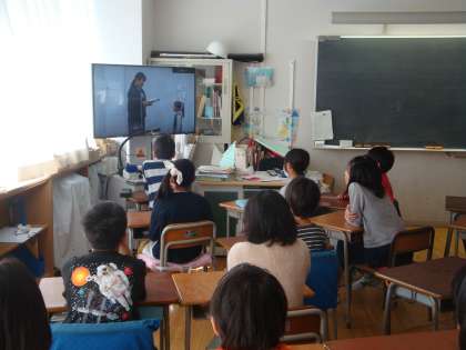 修了式がテレビ放送で行われました。スタジオでは各学年の代表の子どもが終了証を校長先生から受け取りました。各教室ではテレビを通し、その様子を見ながら、子どもたちは1年間の自分の教室・クラスであったことを思い返していました。