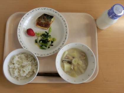4月10日(水)の給食 公開日 2019/04/10 更新日 2019/04/10 給食 ★☆★ 献立 ★☆★ 牛乳 桜ご飯 魚のごまだれ焼き 白菜の塩こんぶがけ 飛鳥汁 果物 ★☆★ 材料名と産地 ★☆★ 米・・・・・・・・・・・秋田県 餅米・・・・・・・・・・国産 鯖・・・・・・・・・・・ノルウェー いいね(0)