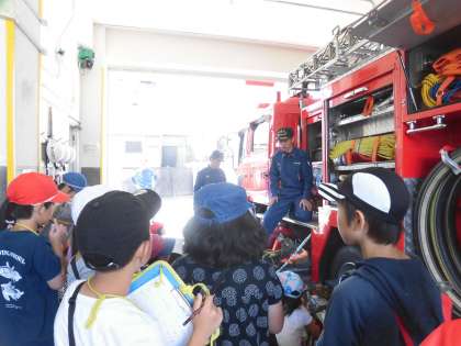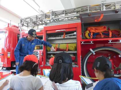 4年生が社会科見学に行きました。行き先は上北沢消防出張所です。救急隊員さんの一日の生活の様子や消防車両の装備について教えていただきました。