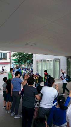 くすのき学級の4年生以上の児童が連合移動教室に出発しました。お留守番の1・2・3年生でお見送りをしました。