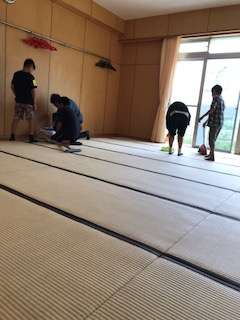 移動教室最終日。3日間お世話になった林間学園の部屋を掃除しました。「来たときよりも、きれいにしよう!」と、みんなで協力して掃除しました。