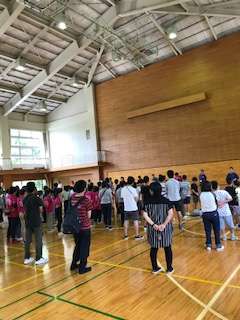 その後、体育館で閉園式をしました林間学園の職員の皆さんにお礼を言って、林間学園を出発しました。