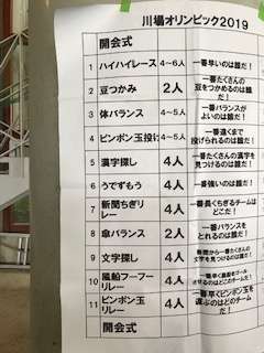 その代わりのプログラムとして、「川場オリンピック2019」を行いました。このプログラムは、室内の活動でも楽しい思い出に残る移動教室にしたいと、先生方が子どもたちには秘密に企画したプログラムです。