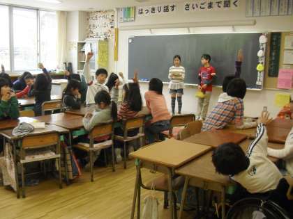 5年生が、配ぜんや6年生へのインタビューなど