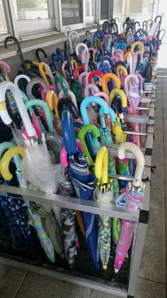 昨日の雨でみんながさしてきた傘、特に1・2年生の傘はカラフルでキレイでした。1年生の七夕かざりの色とりどりの短冊を思い出しました。雨の日にも何か楽しいことを見付けたいですね。