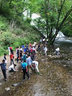 子どもたちは、滝の水量の多さと水が落ちる音の大きさに歓声をあげていました。どの滝も迫力がありました。湯滝は、川の側まで降りられるところがありました。湯滝の水は、とても澄んでいて冷たかったです。