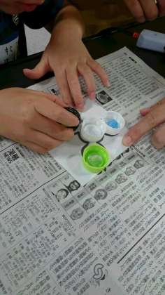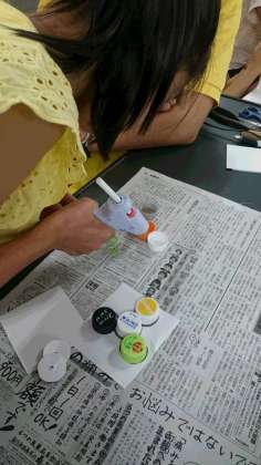 作って遊ぼう!では、日大SSGのみなさんとペットボトルのキャップなどのリサイクル品を使ってハンドスピナーを作りました。できあがったハンドスピナーに色を塗ってきれいに仕上げていました。結構よく回っていましたね。買ってきて、すごくよく回るものもいいけれど、自分で作ったもので遊べることはとても価値のある活動だな、と思いました。