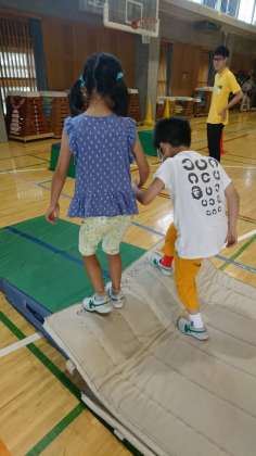 松沢パラリンピックでは、目隠しをしたゲームが3つ行われました。すべてのゲームが目隠しをしているため、友達との協力が必要です。