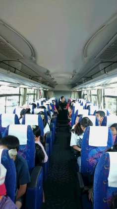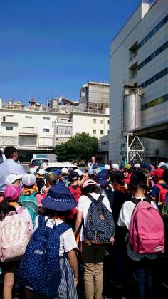 初めは花王川崎工場に向かいます。途中、車窓からいろいろなものを見ながら来ました。新宿東京都庁、大井新幹線車両基地、大田市場、羽田空港・・・車両基地ではちらっと車庫に収まるドクターイエローも見えました。これが見えた人は1日ラッキーとか♪