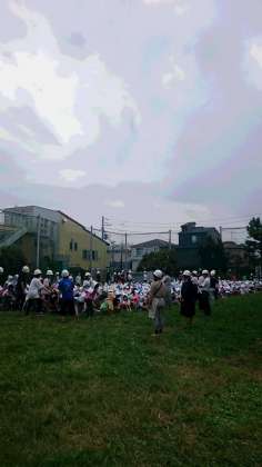 今回は地震で校庭に避難した後、地震による火災からの二次避難で第二校庭まで移動する避難訓練でした。
