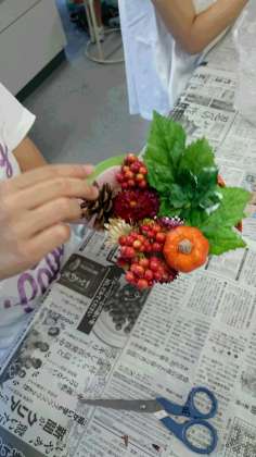 10/5 どきどき土曜スクール その3 公開日 2019/10/05 更新日 2019/10/05 できごと フラワーアレンジメントは、これからの季節にぴったりのハロウィーンのリース作りです。 同じ材料を使っていきますが、作品に個性が出ていておもしろかったです。 いいね(0)