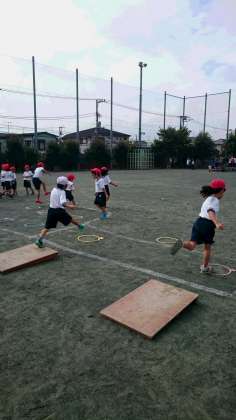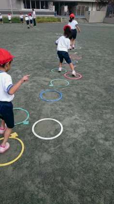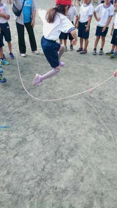 体育の時間の体つくり運動や休み時間の外での道具を使った運動などを通して、子供たちが健やかな身体をつくっていけるように、取り組みをしています。