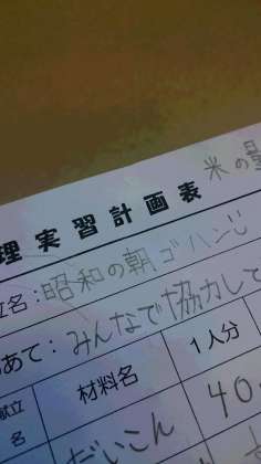 ある班の献立名を見ると「昭和の朝ごはん」と書いてありましたが・・・いやいや、ごはんとみそ汁の朝ごはんは、当然平成でも食べられていましたし、令和でも食べられていきますよね!