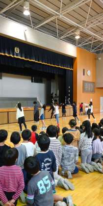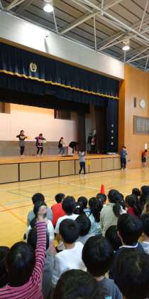 昼休みに、バトントワラークラブとジャグリングクラブの発表会が行われました。