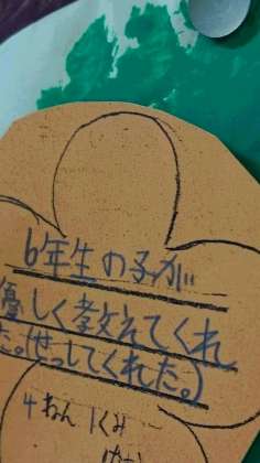 「6年の子と仲よくなりました。楽しかったです、と言ったら、ありがとう、と言われたのでうれしかったです。」