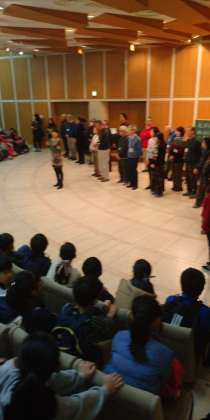 ホールで鑑賞に際しての約束ごとを聞き、その後グループに別れての鑑賞です。