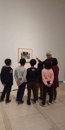 今日は「奈良原一高のスペイン 約束の旅」「受け継がれる工芸の技と心 そして現代へ」との企画展示がされていましたが、29名もの鑑賞リーダーの方々が丁寧に解説をしてくださり、子供たちは鑑賞を楽しんでいました。