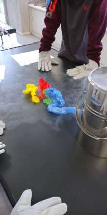 「野菜やシャボン玉、消しゴムを液体窒素につける」