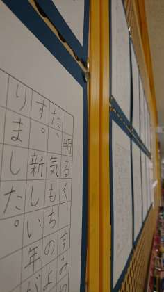 1/23 学校公開日、書き初め展開催中