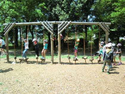 水遊びができなかった分、子どもたちはアスレチックで元気いっぱい遊びました。