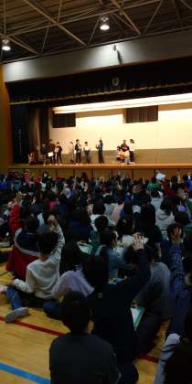 集会委員の人が紙を引く度に歓声があがり、BINGOゲームを楽しみました。集会委員の皆さん、準備や進行ありがとうございました。