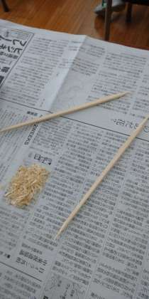 3年生が小刀を使ってわりばしを削り、自分だけのえんぴつ作りに取り組んでいました。